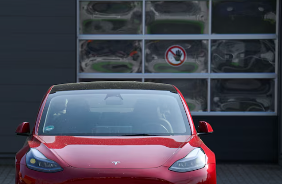 A Tesla electric vehicle is parked at a Tesla dealership, after Tesla, Inc. released its financial results for the first quarter of 2025, in Berlin, Germany April 23, 2025.