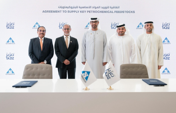 Wedoany.com Report-Nov. 8, TA’ZIZ has signed two long-term product sale agreements with The Sanmar Group for the supply of key petrochemical feedstocks, marking a significant step in UAE’s industrial growth. The agreements were announced during ADIPEC in the presence of UAE Minister of Industry and Advanced Technology and ADNOC Group CEO Dr. Sultan Ahmed Al Jaber, and TCI Sanmar Chemicals Chairman Ambassador Navdeep Suri.