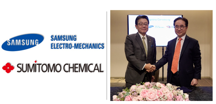 The signing event took place in Tokyo and included Chang Duckhyun, President of Samsung Electro-Mechanics; Keiichi Iwata, Chairman of Sumitomo Chemical; Nobuaki Mito, President of Sumitomo Chemical; and Lee Jongchan, President of Dongwoo Fine-Chem, a Sumitomo subsidiary, plus other senior leaders.