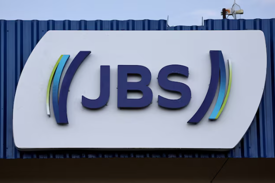 The logo of JBS S.A, the world's largest beef producer, is pictured at a plant of JBS in Santa Maria das Barreiras, Para state, Brazil September 12, 2025.