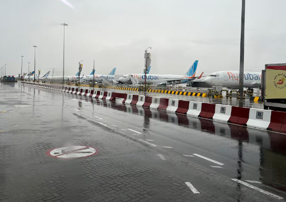 A general view from inside a bus of flydubai aircraft at Dubai International Airport, Dubai, United Arab Emirates November 17, 2023.